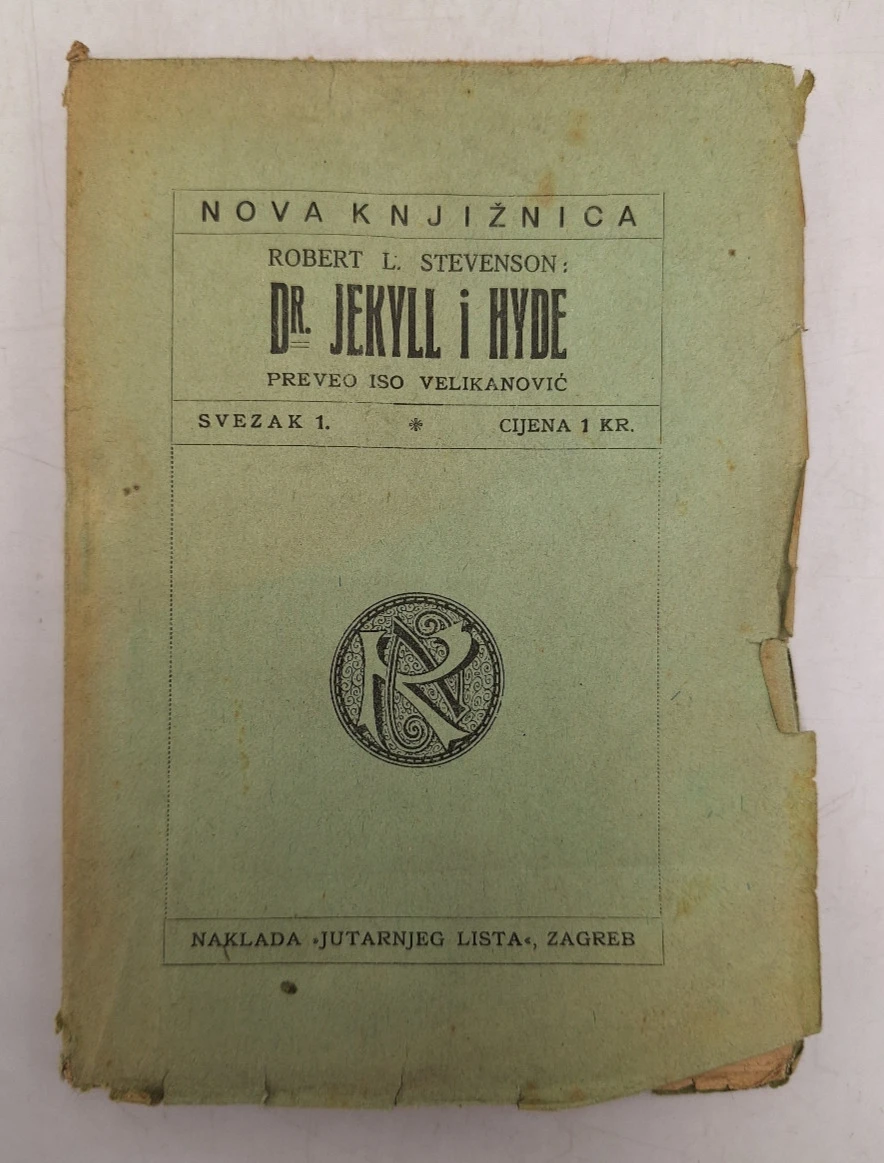 Rijetko rano hrvatsko izdanje klasika svjetske književnosti Dr. Jekyll i Hyde škotskog autora Roberta Louisa Stevensona, u prijevodu poznatog hrvatskog književnika Ise Velikanovića. Objavljeno u biblioteci Nova knjižnica, ovo izdanje predstavlja jedno od najranijih prijevoda Stevensonova djela na hrvatski jezik.