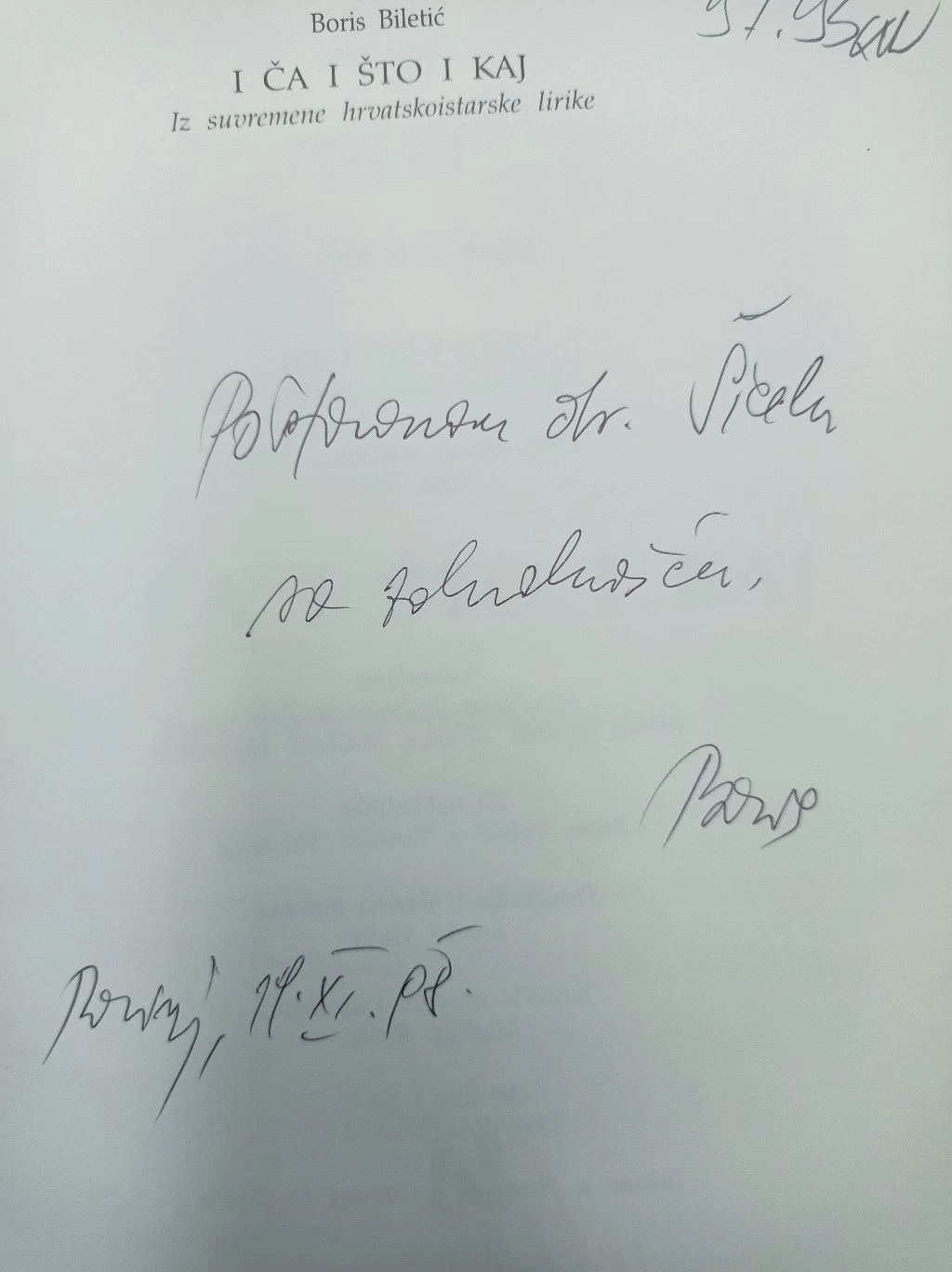 Knjiga sadrži posvetu autora