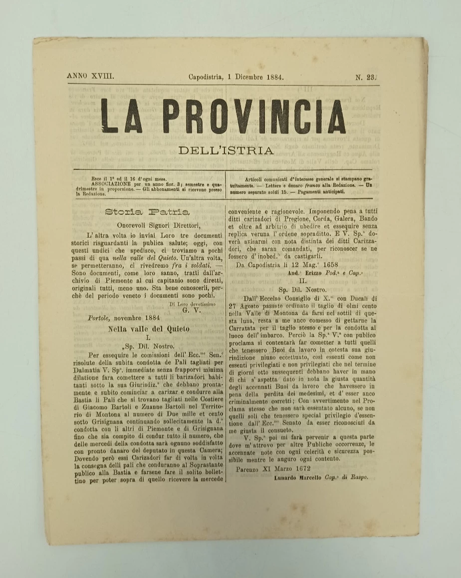Časopis La provincia dell'Istria 23/1884.