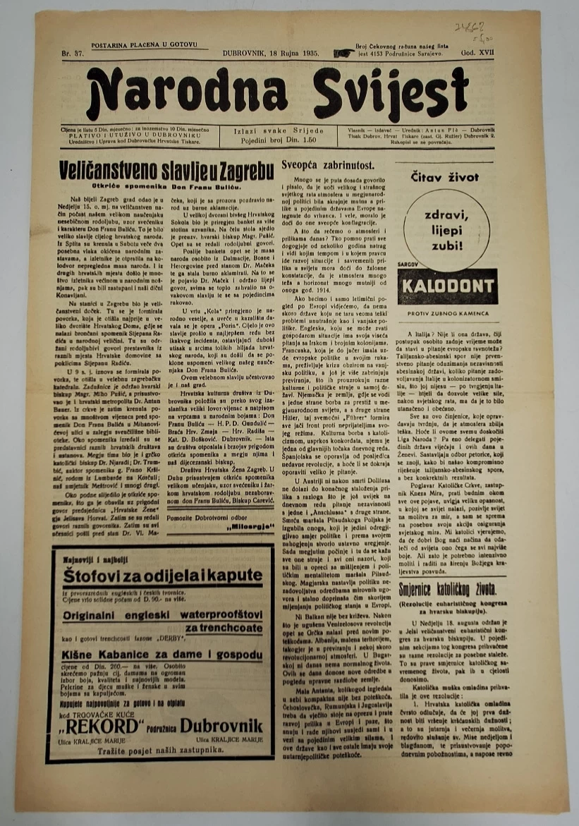 Časopis Narodna svijest br. 37/1935.