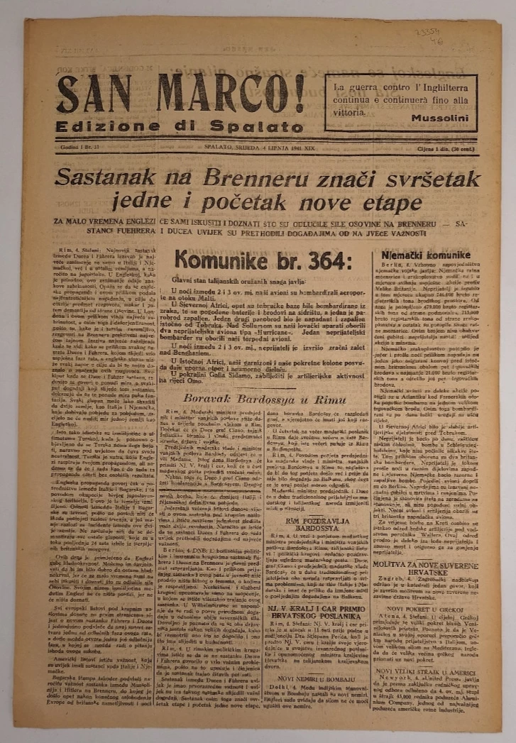 Dvojezične dnevne novine koje su izlazile za vrijeme talijanske okupacije Splita od 1941. do 1943.
