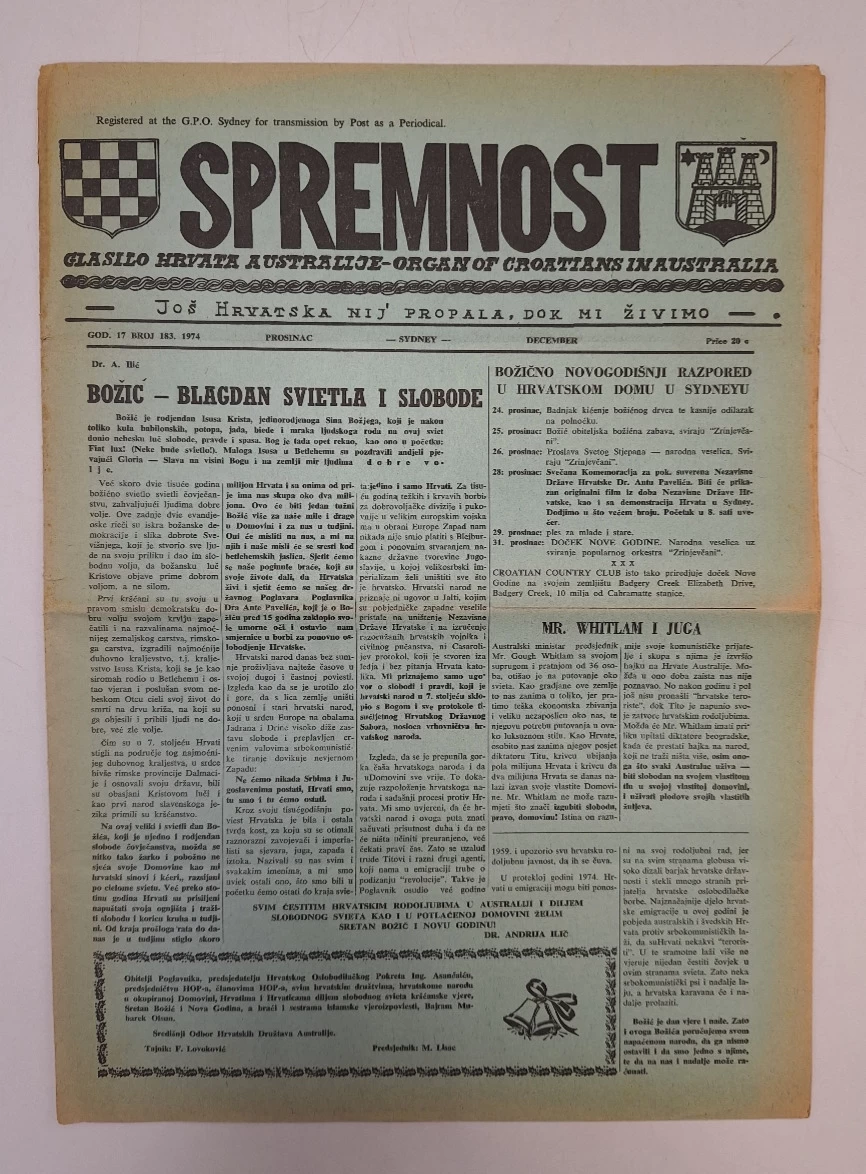 Glasilo Hrvata Australije - Organ Of Croatians In Australia