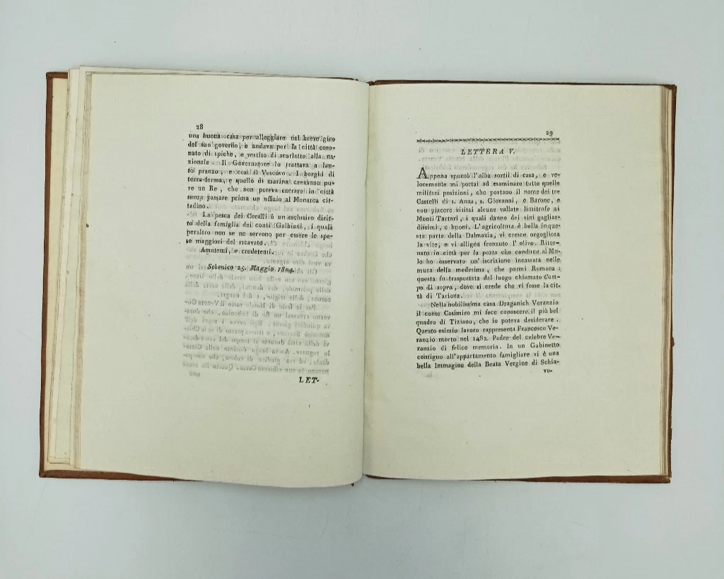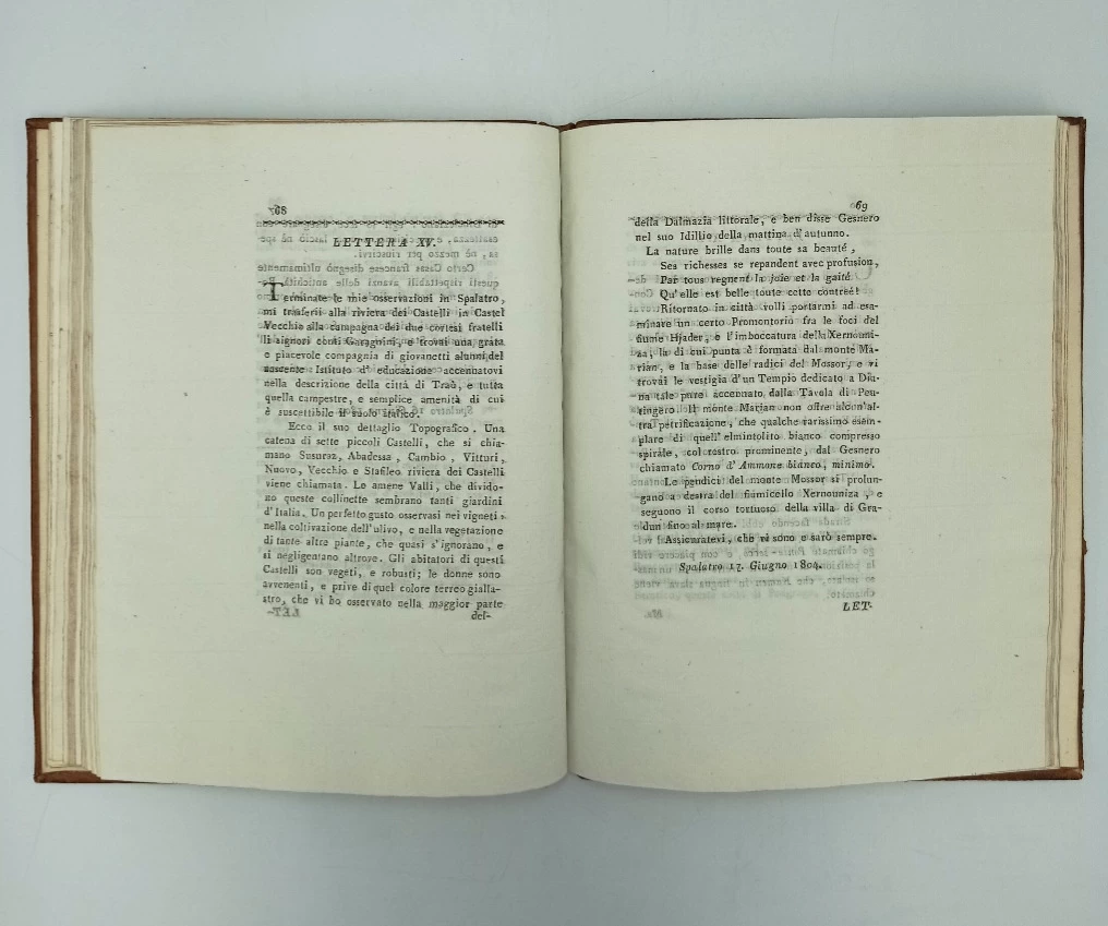 Djelo prvi put objavljeno na talijanskom 1809. godine (Viaggio nella Dalmazia litorale). U obliku poslanica (24 poslanice) opisani arheološki i povijesni spomenici krajeva kroz koje je autor prolazio. Podaci o onodobnom gospodarstvu, društvu, kulturi, učenim ljudima.