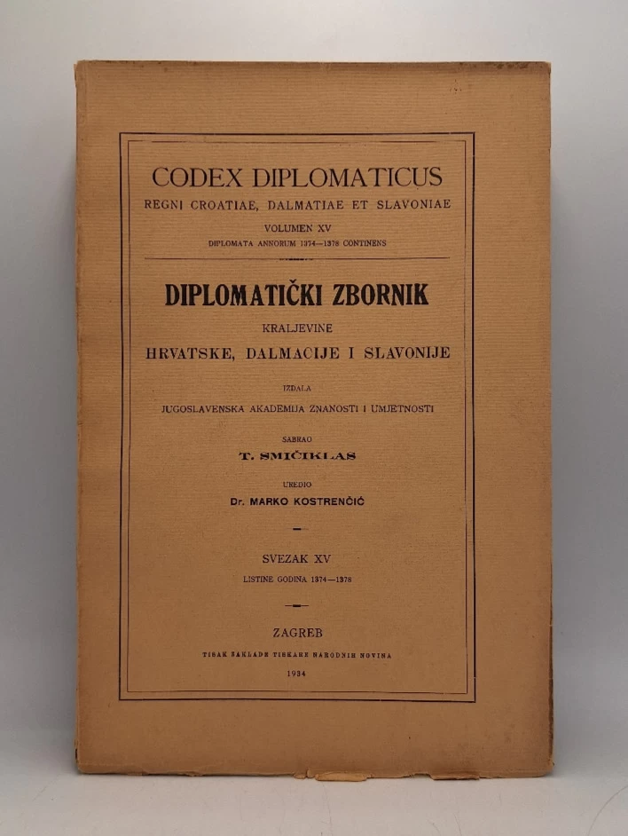 Tadija Smičiklas: Codex diplomaticus Regni Croatiae, Dalmatiae et Slavoniae / Diplomatički zbornik Kraljevine Hrvatske, Dalmacije i Slavonije XV.