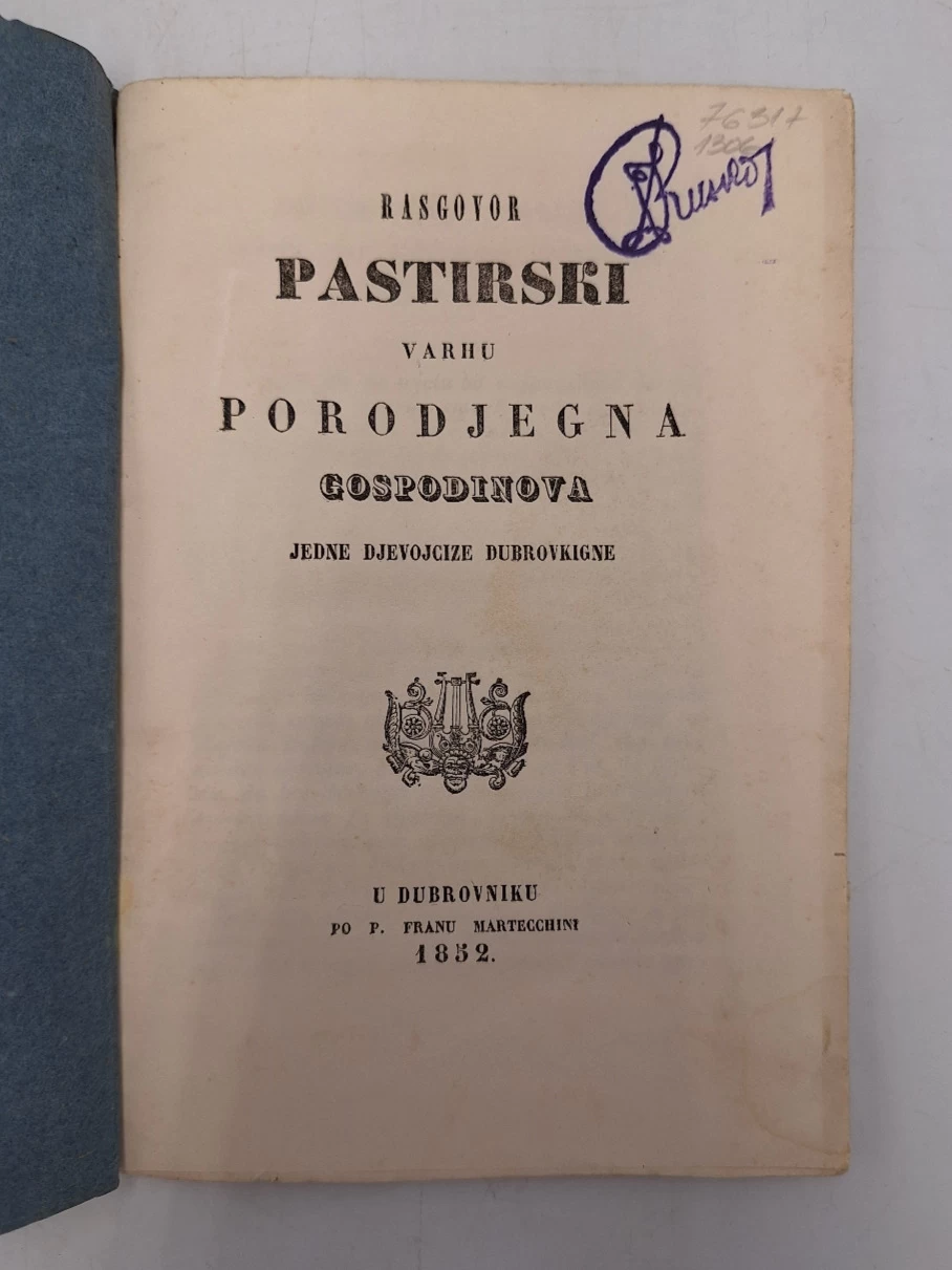 Anica Bošković: Rasgovor pastirski varhu porodjegna: gospodinova jedne djevojcize dubrovkigne