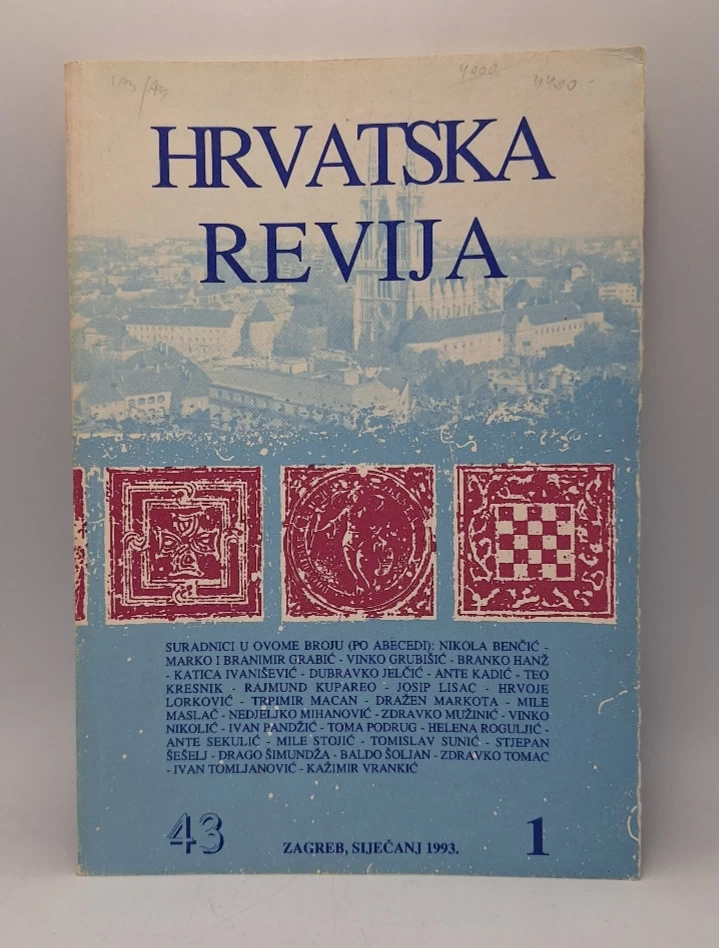 Vinko Nikolić: Hrvatska revija, svezak 1 (169)/1993