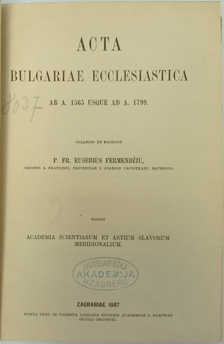 Euzebije Fermendžin: Acta Bulgariae ecclesiastica