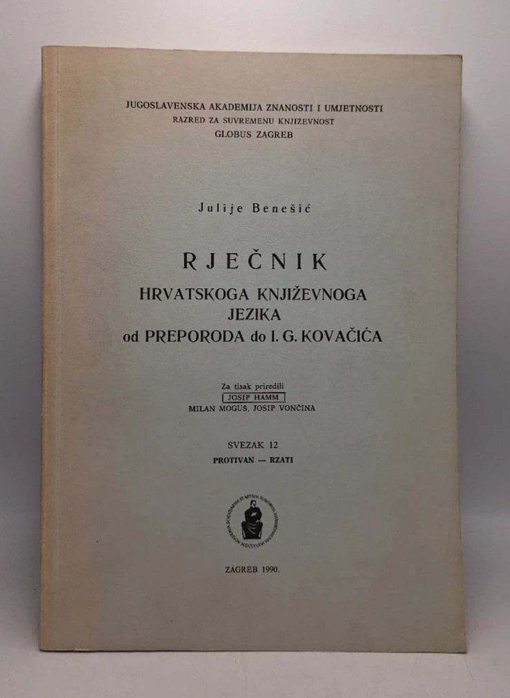 Julije Benešić: Rječnik hrvatskoga književnoga jezika od Preporoda do I.G. Kovačića. Svezak 12 (protivan - rzati)